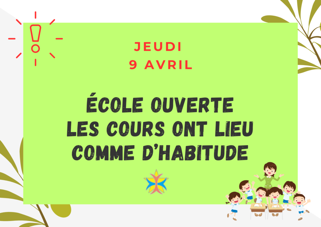Demain, une grève des enseignants est programmée mais notre école n’y participe pas. L’école est bien ouverte et les cours se donneront normalement.