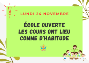 Chers parents, Les 24, 25 et 26 novembre seront des journées pendant lesquelles des mouvements de grève nationale auront lieu. Voici des informations concernant l’organisation de notre