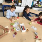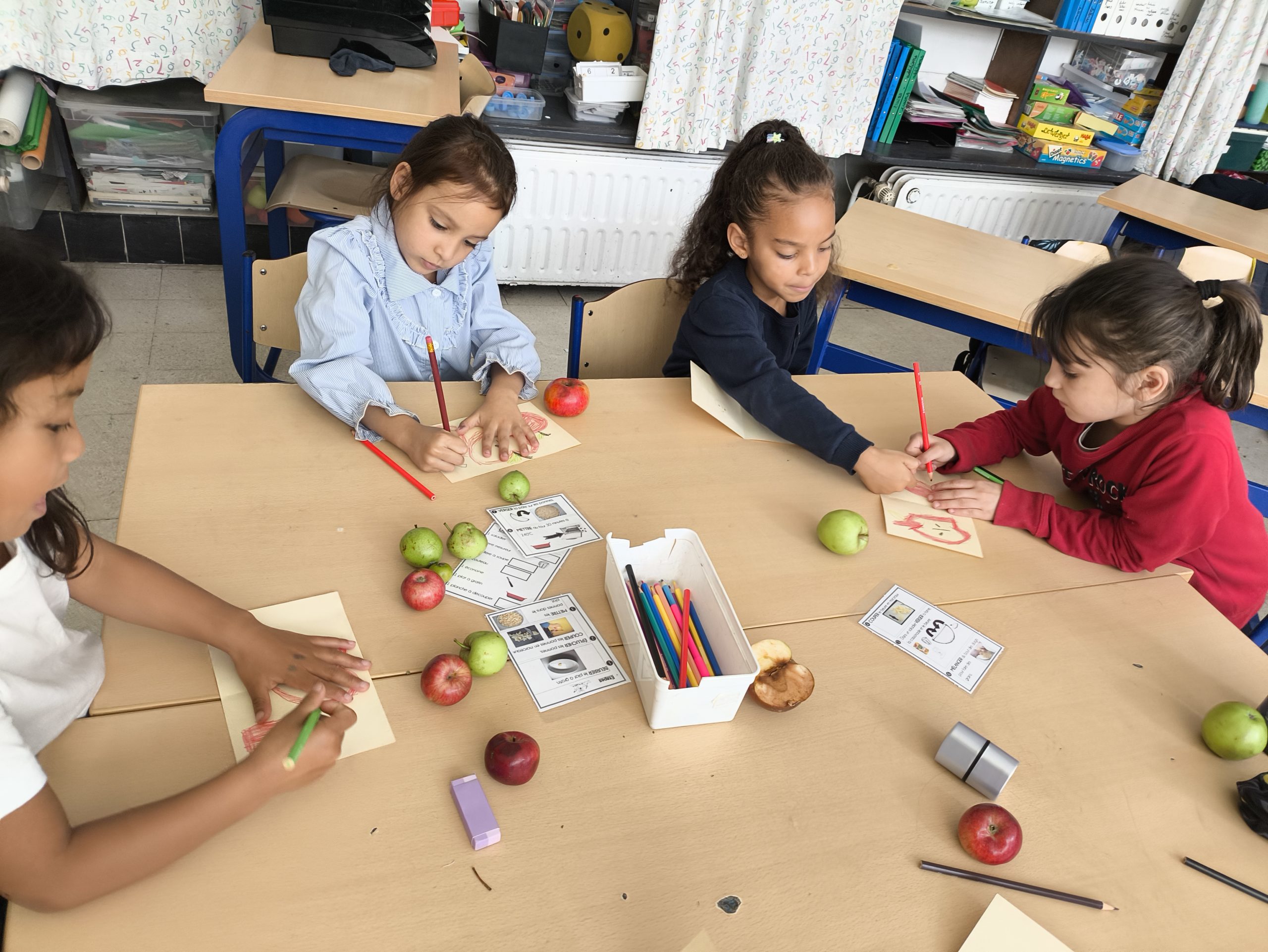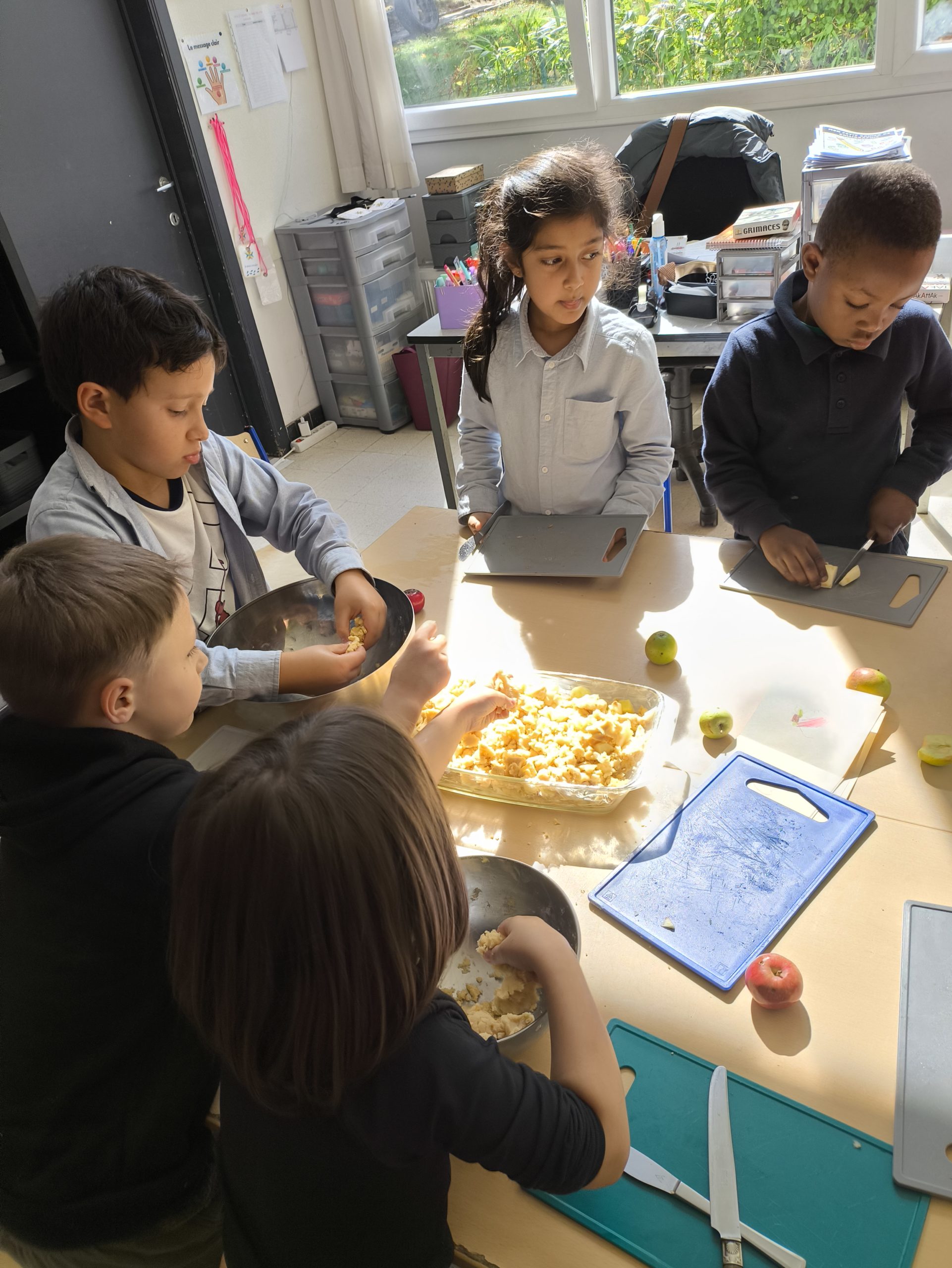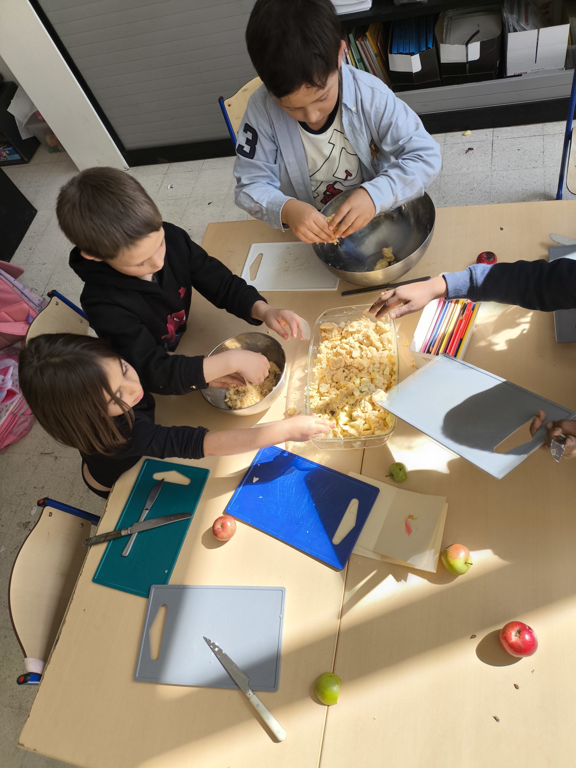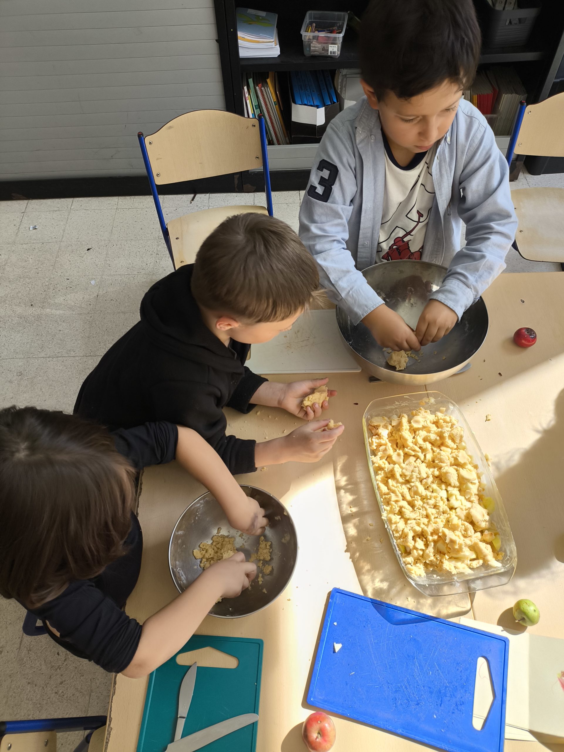 Après avoir fait une promenade au parc et une cueillette de pommes dans le verger du parc Solvay, nous avons fait un délicieux crumble aux pommes.