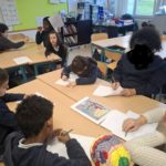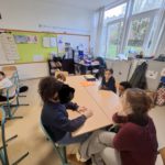 Elles sont revenues une 2 ème fois pour que nous puissions essayer l’accordéon et dessiner nos émotions sur le spectacle ou sur les questions -réponses .