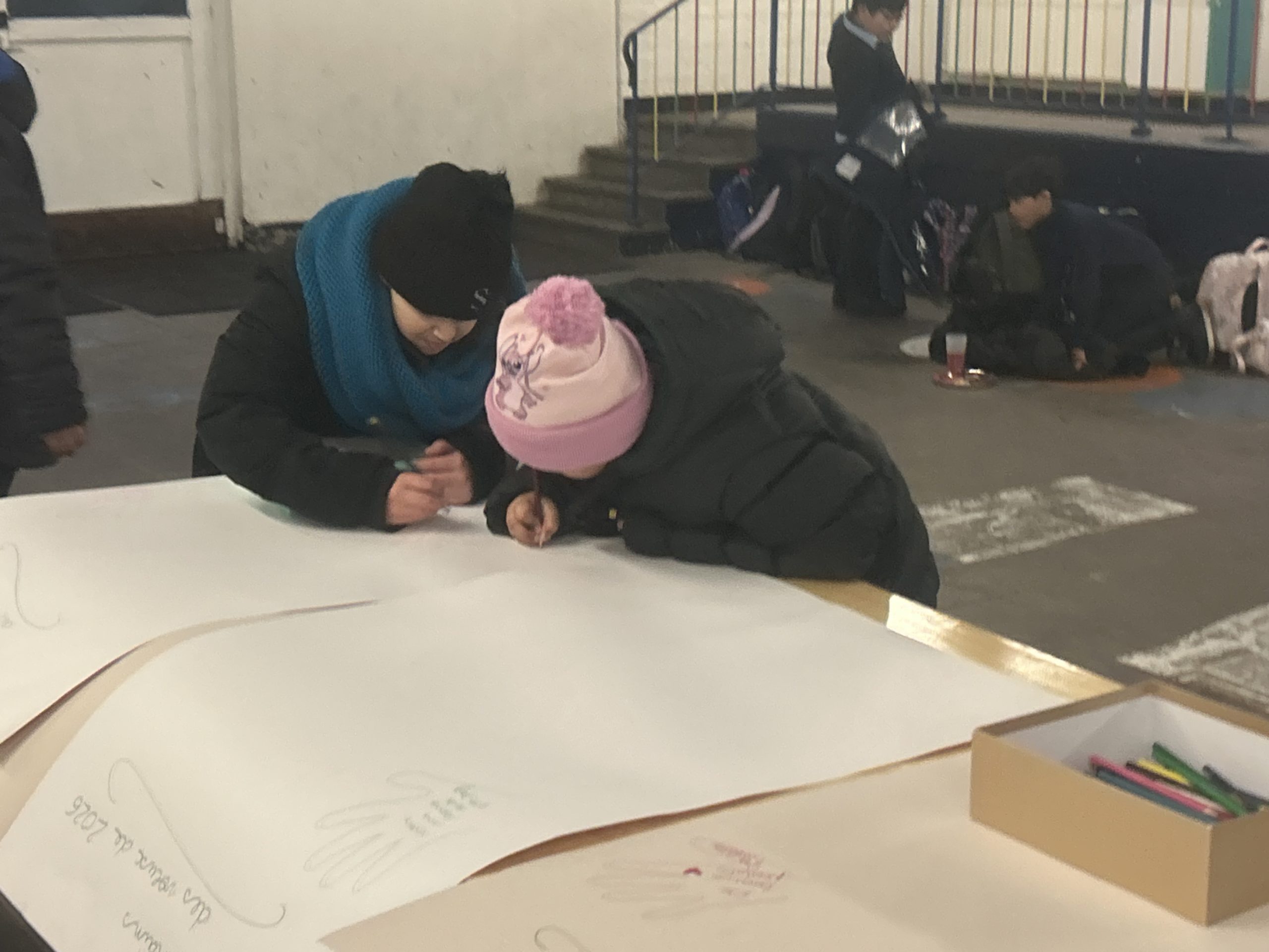 Elles sont revenues une 2 ème fois pour que nous puissions essayer l’accordéon et dessiner nos émotions sur le spectacle ou sur les questions -réponses .