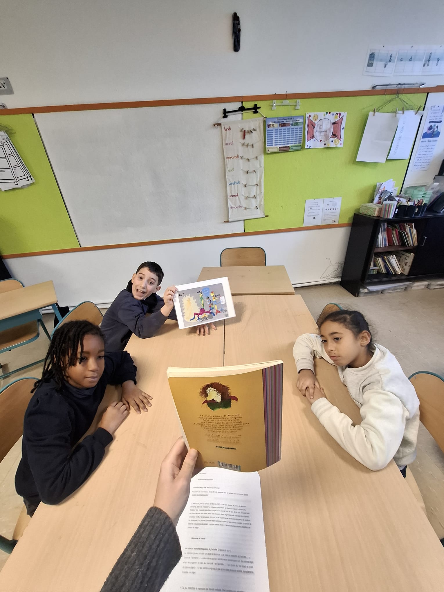 Madame Marie (asbl maître mot ) est venue en classe pour nous lire des histoires .