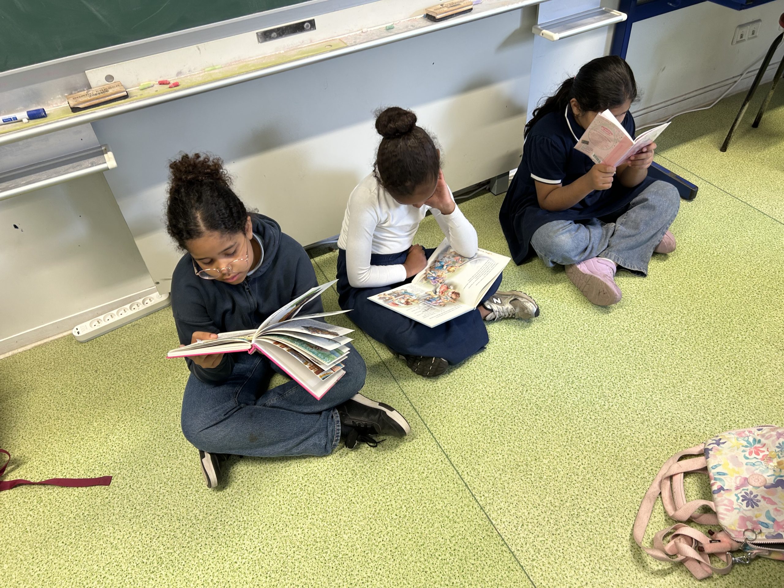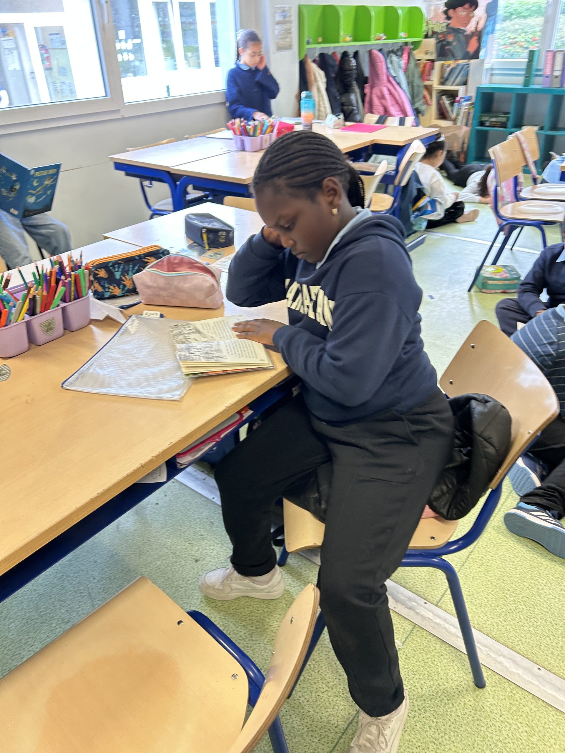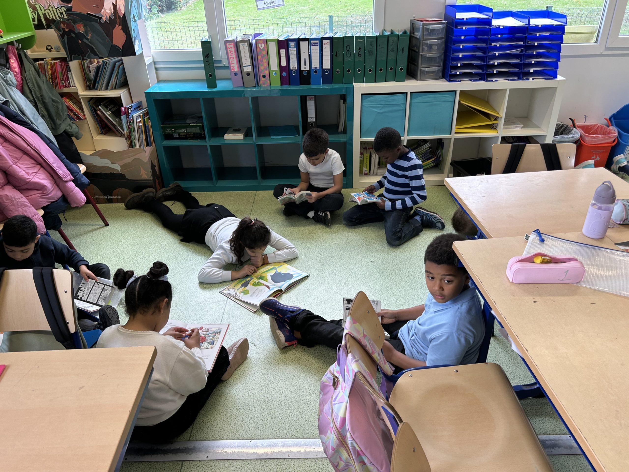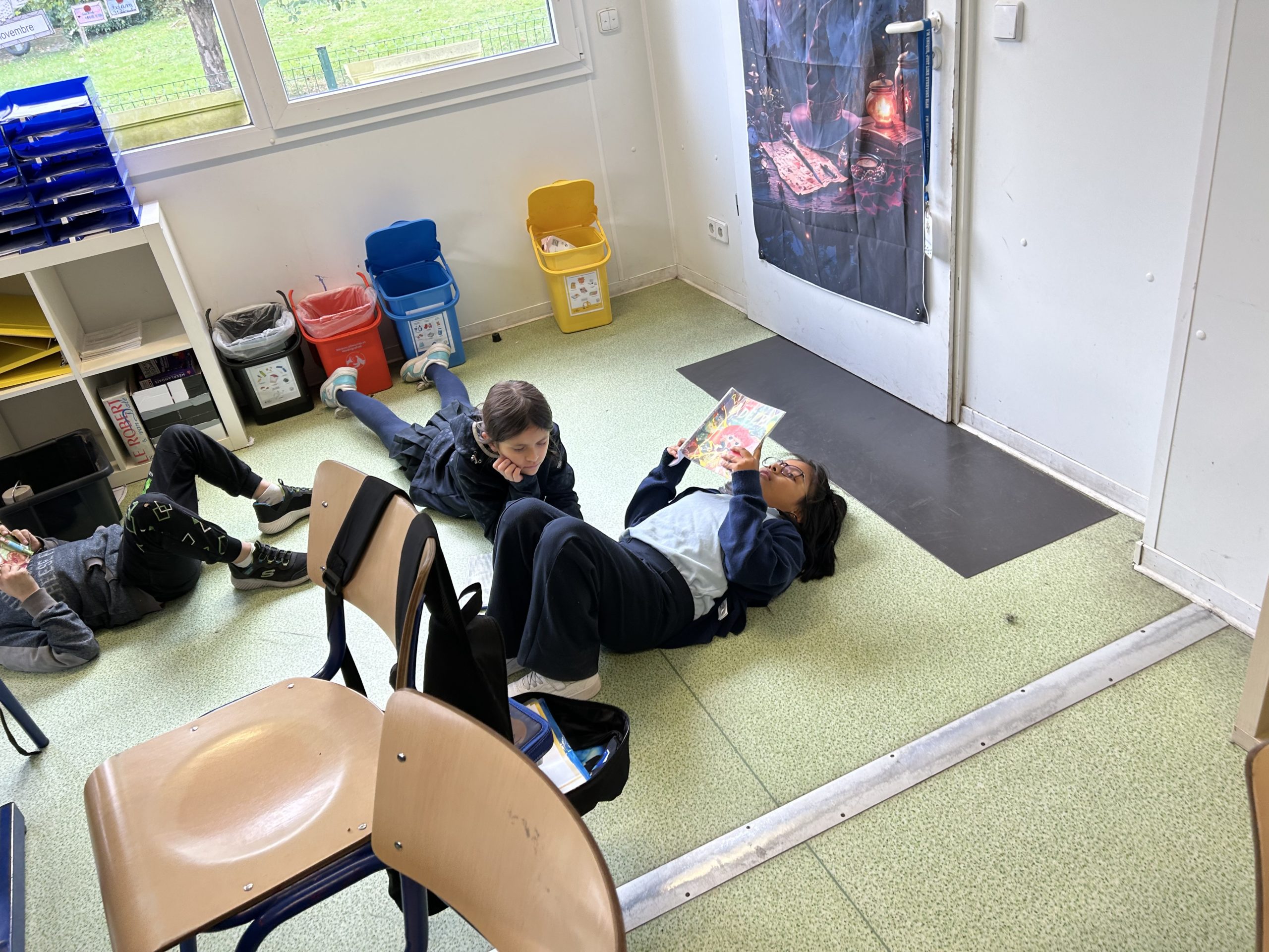 Chaque semaine, nous profitons aussi de notre quart d’heure lecture, un moment où chacun peut s’installer comme il le souhaite et lire le livre de son choix.